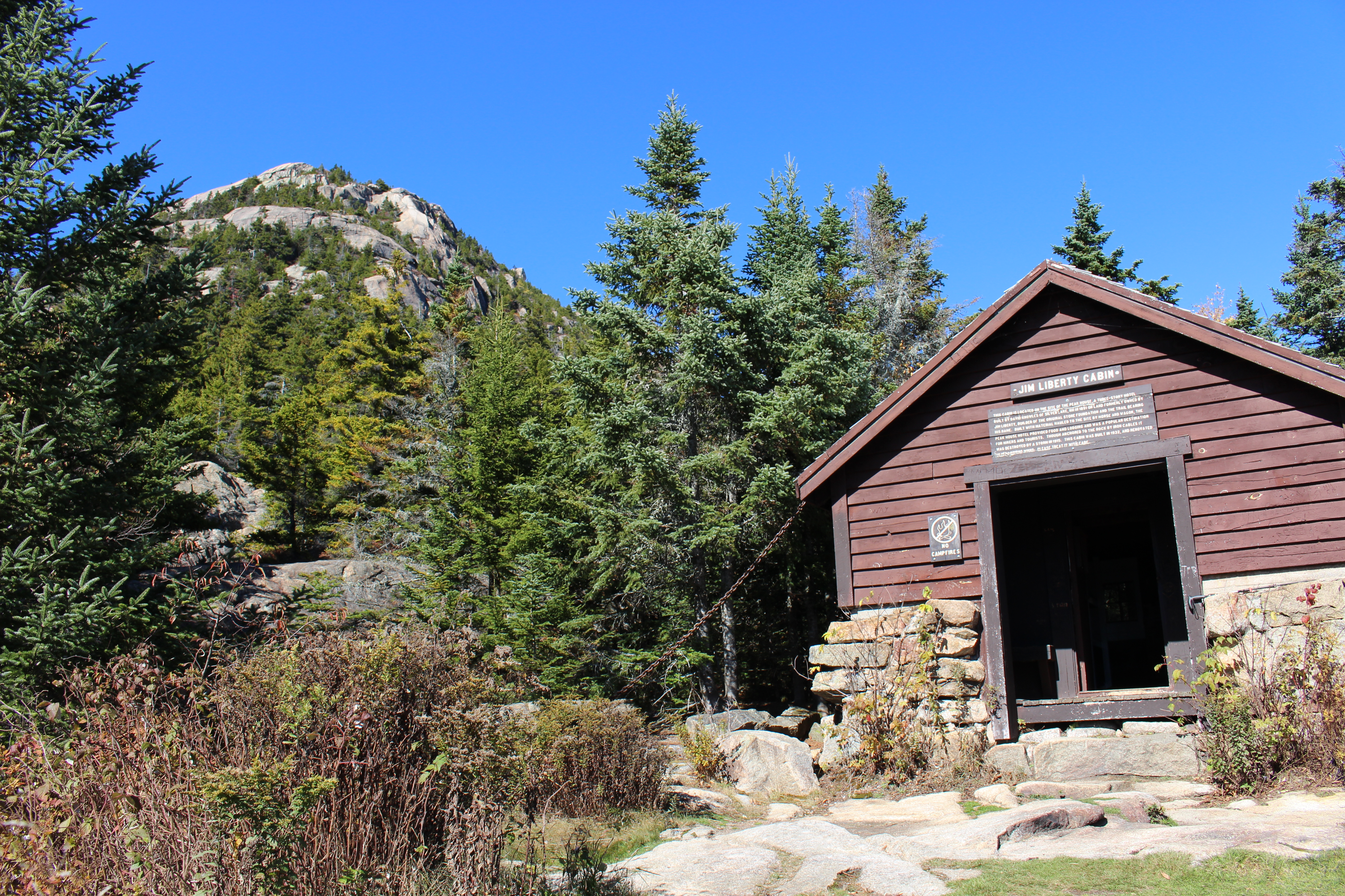 We hiked a loop, up the Liberty Trail and down the Brook Trail (about 7.5 miles RT). The Liberty Trail, a one-time carriage road, has fairly easy footing (by White Mountains standards) until you arrive at the ledges, while the Brook Trail has rougher footing and more rocks. This U.S. Forest Service document provides basic trail descriptions and driving directions to each trailhead.