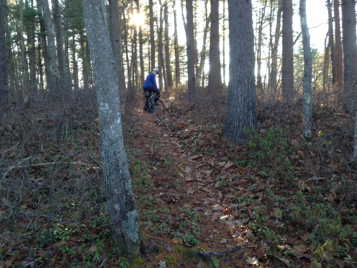 This beautiful swath of forest features many other trails to explore on foot or mountain bike, all of them suitable for what I call intermediate middle-aged lady mountain biking (woods roads, some single track, and some mud, with a few logs that I walk my bike over).