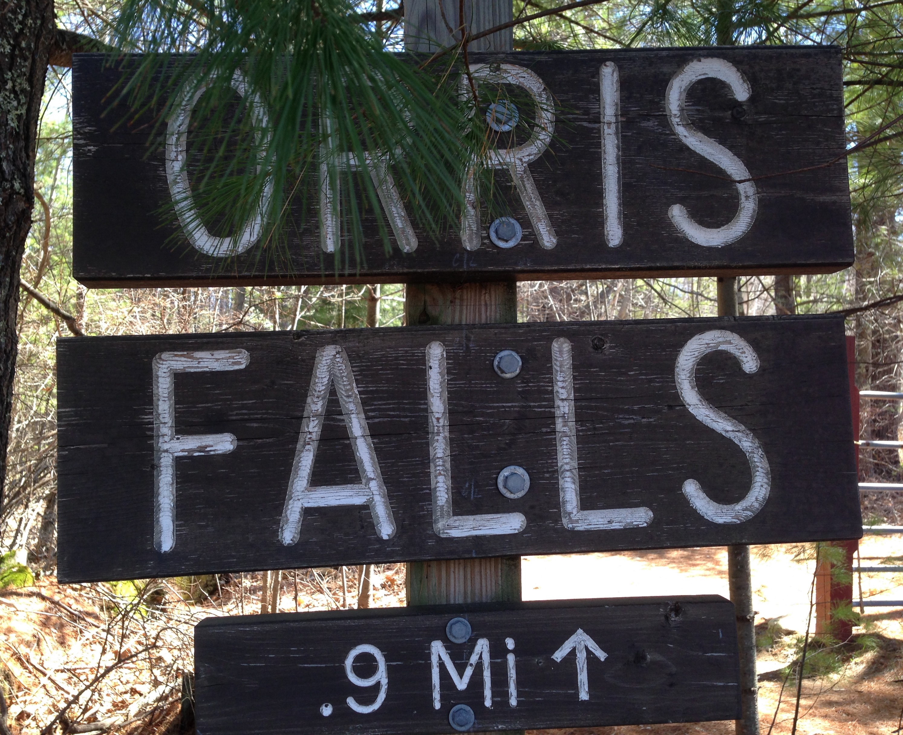 Here, the map for the Orris Falls Conservation Area, which is part of the Great Works Regional Land Trust (see the website for a mobile version of the map).
