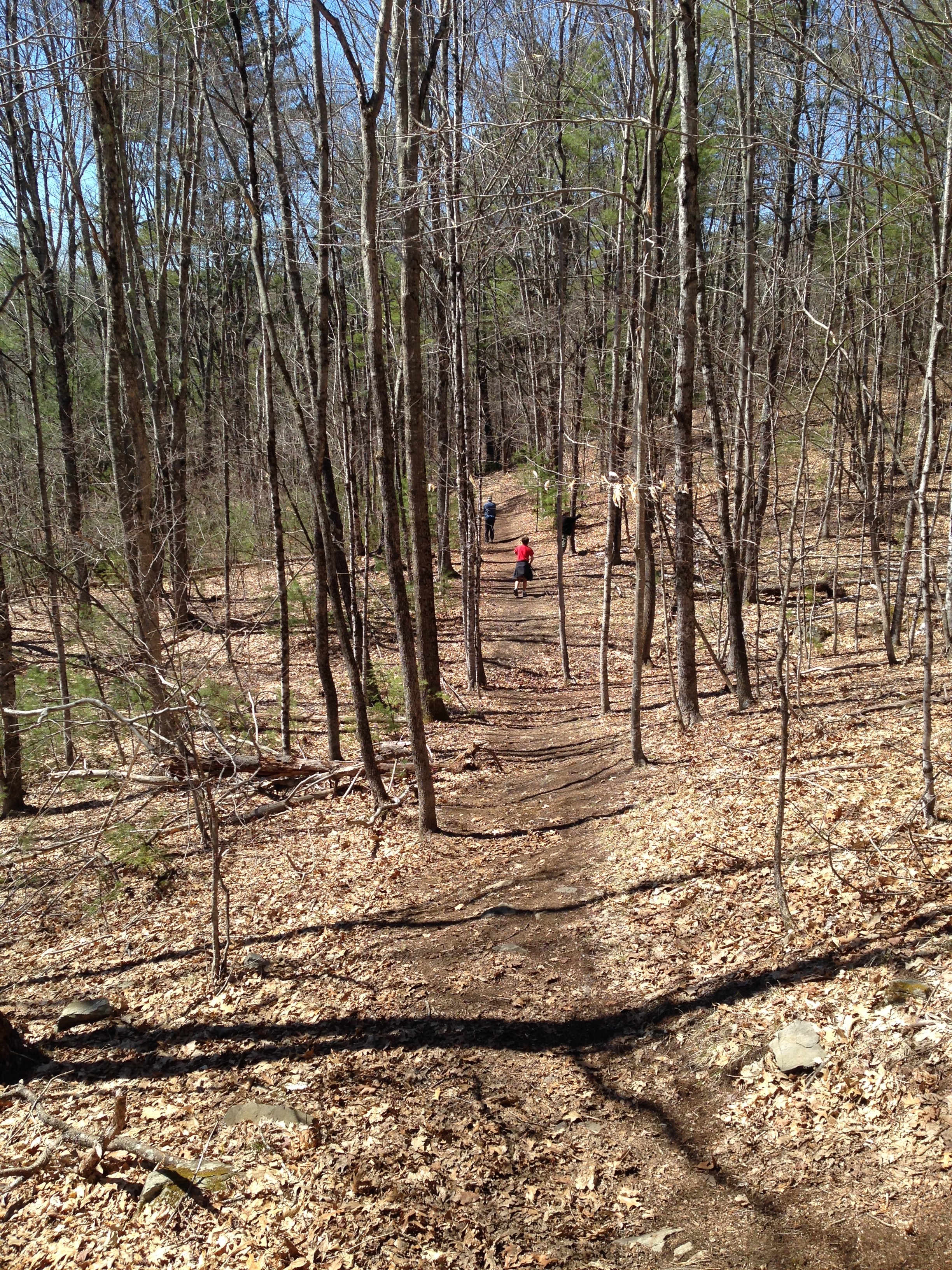 Although we found no sign of the white rose bush, we felt a similar sense of isolation when we explored the Orris Falls Conservation Area. We saw other walkers, but not many, considering that this April afternoon offered ideal circumstances for exploring these trails, with all the sights and contours of the land fully revealed.