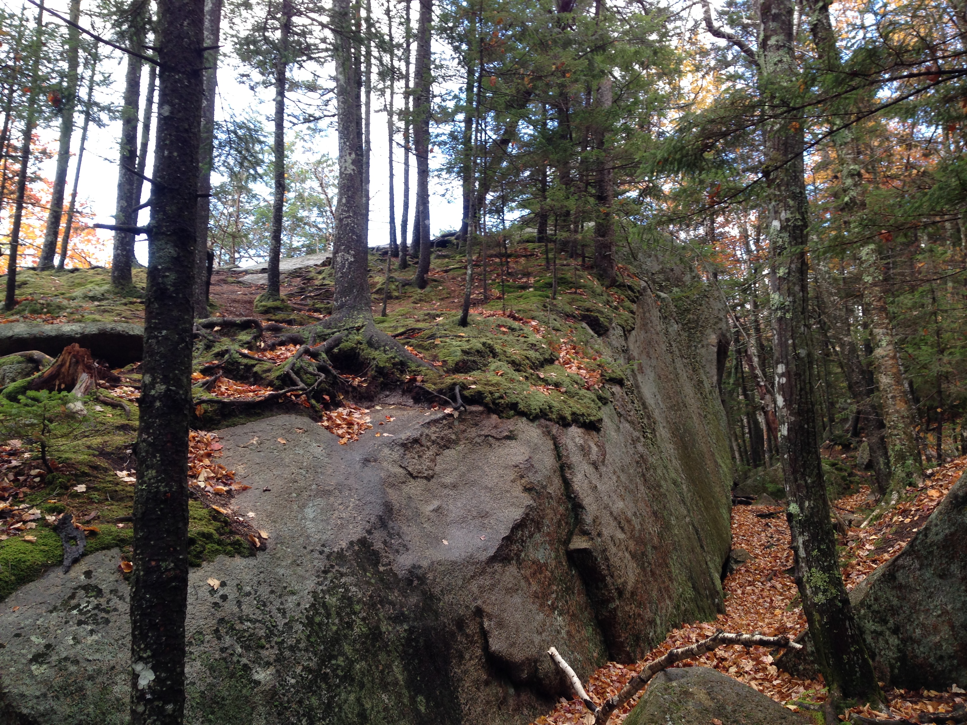 Mount Paugus is part of the Sandwich Range Wilderness, designated as such by the government in 1984. This “wilderness” has a long history of human use, for logging and for recreation. But on this walk, I definitely felt like I was wandering in wilderness, one replete with mysterious forests, vast cliffs and ledges, and dramatic glacial erratics.