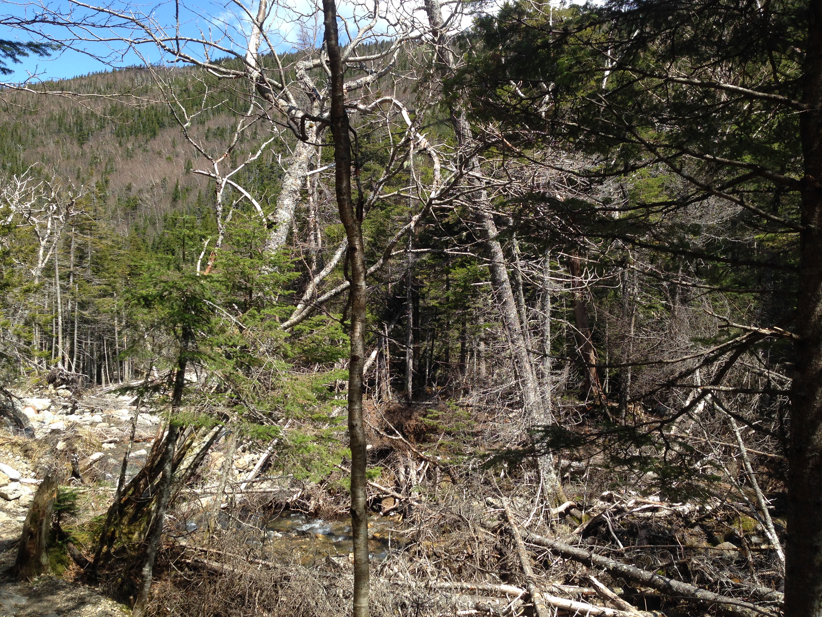 After an easy mile, the trail began to climb along the Ammonoosuc River. The tumbling river still shows much evidence of the havoc wreaked by Hurricane Irene in August 2011 when a wall of water crashed through these mountains. I was planning to hike the Ammo Trail that weekend with my family, with an overnight stay planned at the Lakes of the Clouds hut, but the Forest Service closed down the White Mountain National Forest, a good decision that probably saved some lives and lots of worry.