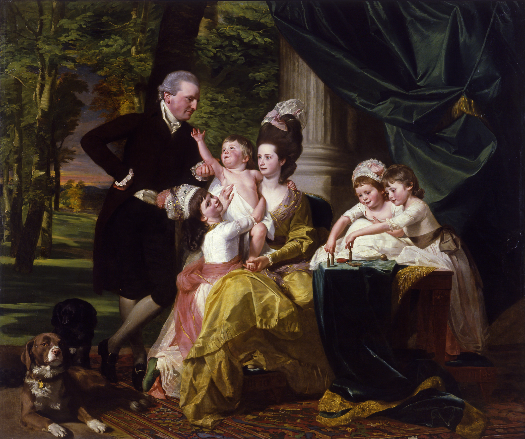 Also living in London was Boston painter John Singleton Copley, who had moved there for artistic reasons. In 1778, Copley painted his second portrait of Elizabeth Royall — a portrait of her ghost. In a family portrait commissioned by William, Copley depicts a happy family, the six Pepperrells, including Elizabeth, at the peak of her beauty and fashion, but dead now for three years.